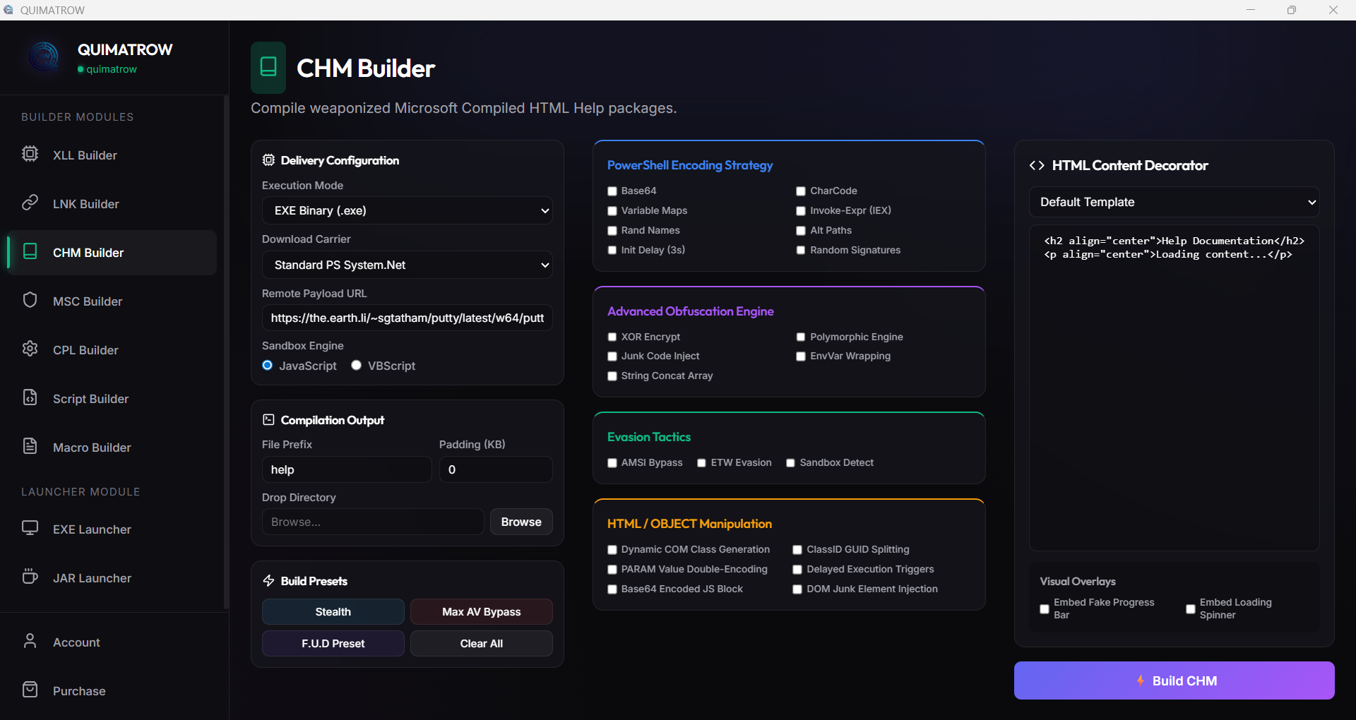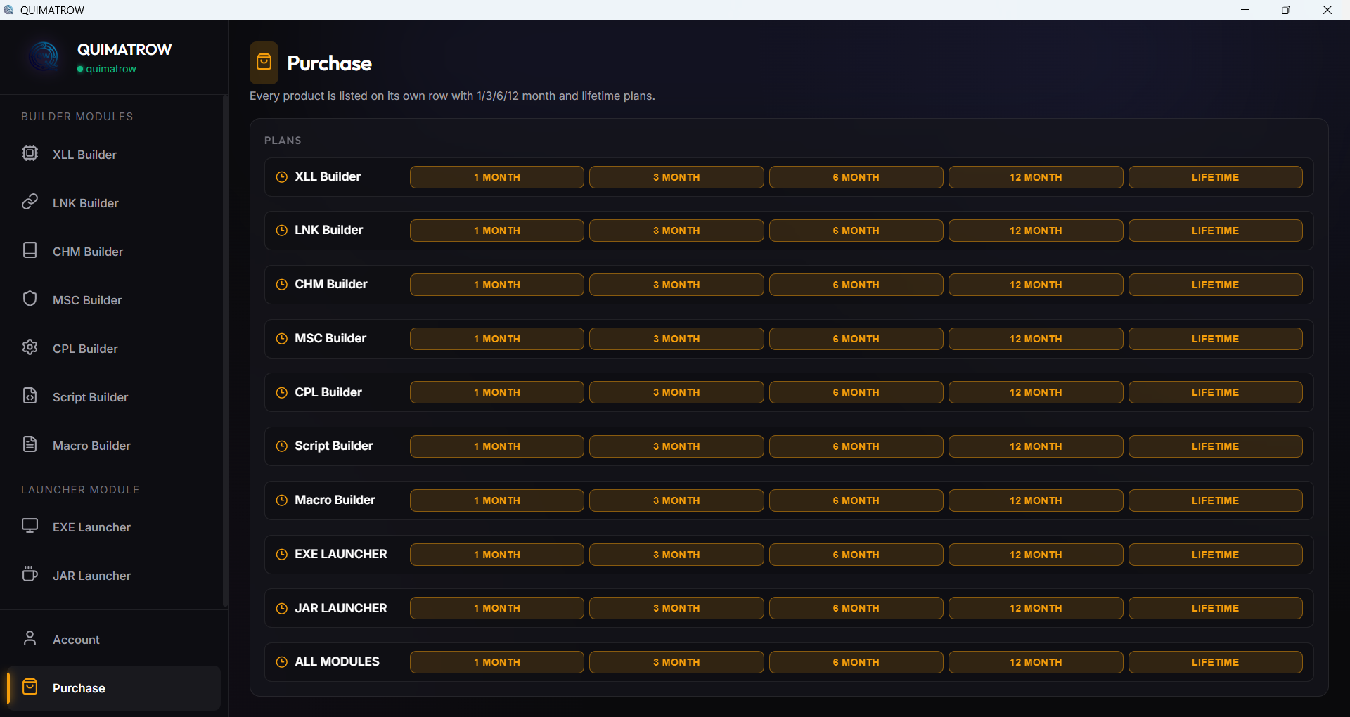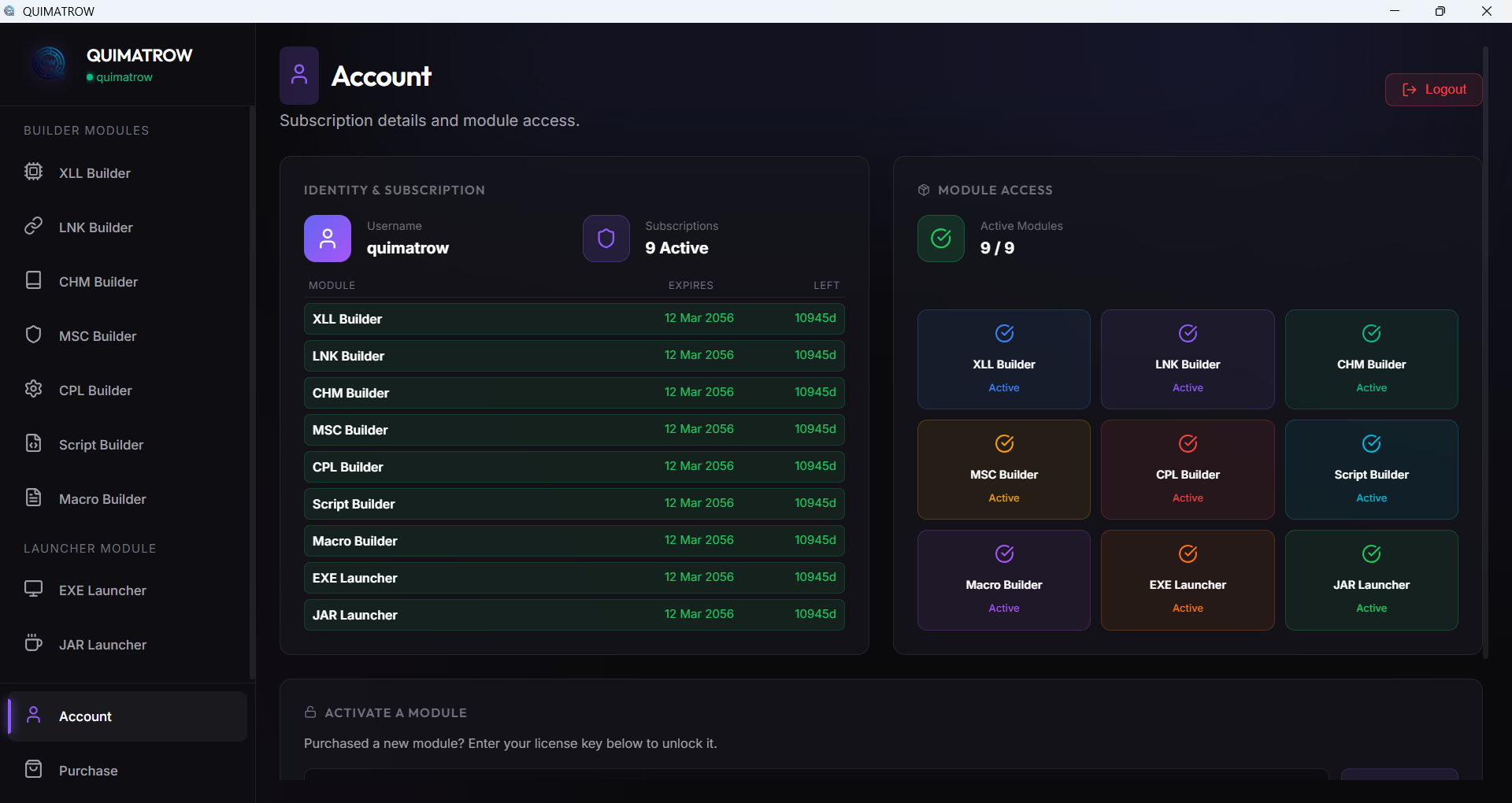 LOGIN PANEL XLL MODULE LNK MODULE CHM MODULE MSC MODULE CPL MODULE SCRIPT MODULE MACRO MODULE EXE LAUNCHER MODULE JAR LAUNCHER MODULE ACCOUNT PANEL PURCHASE PANEL