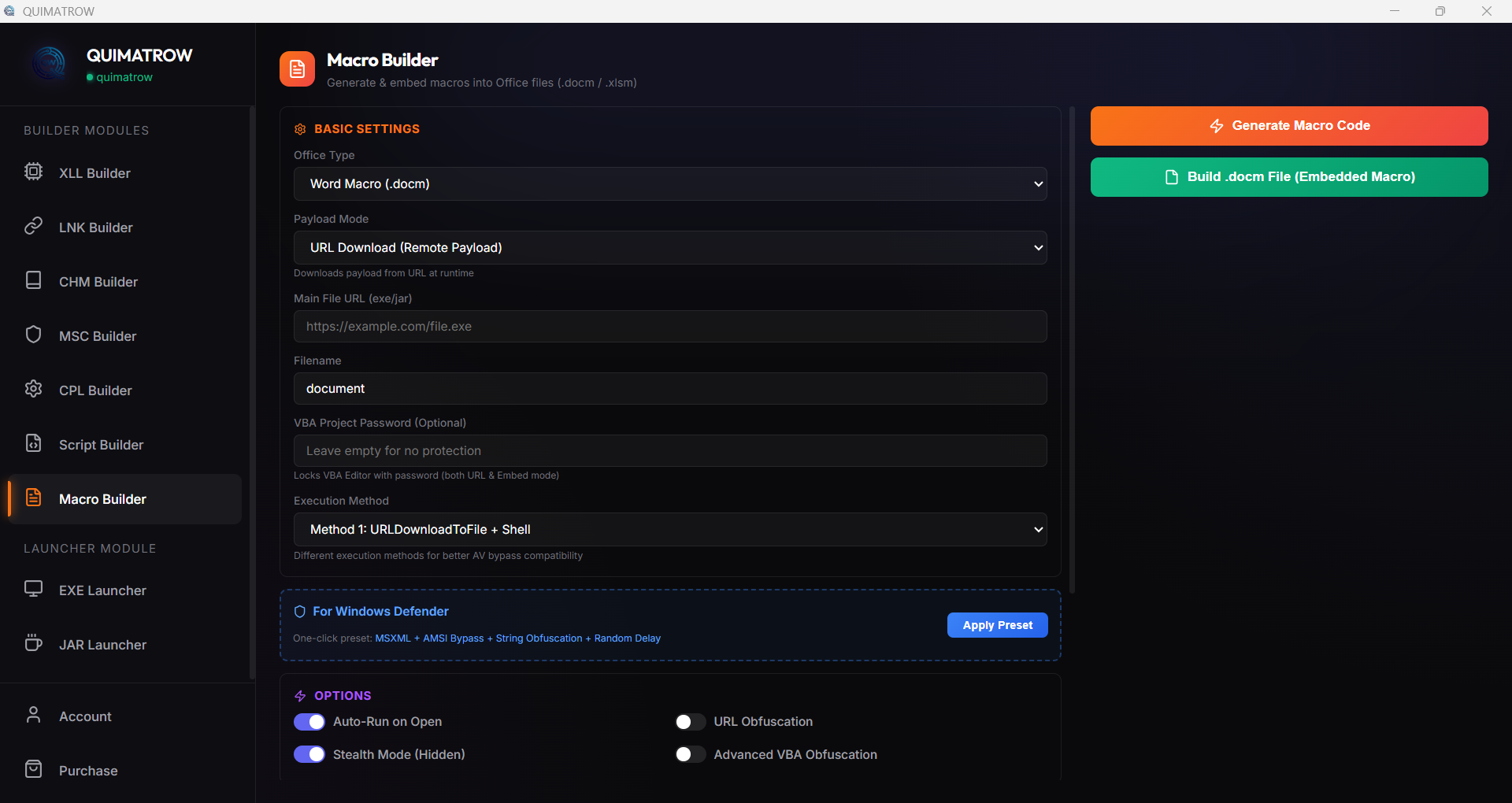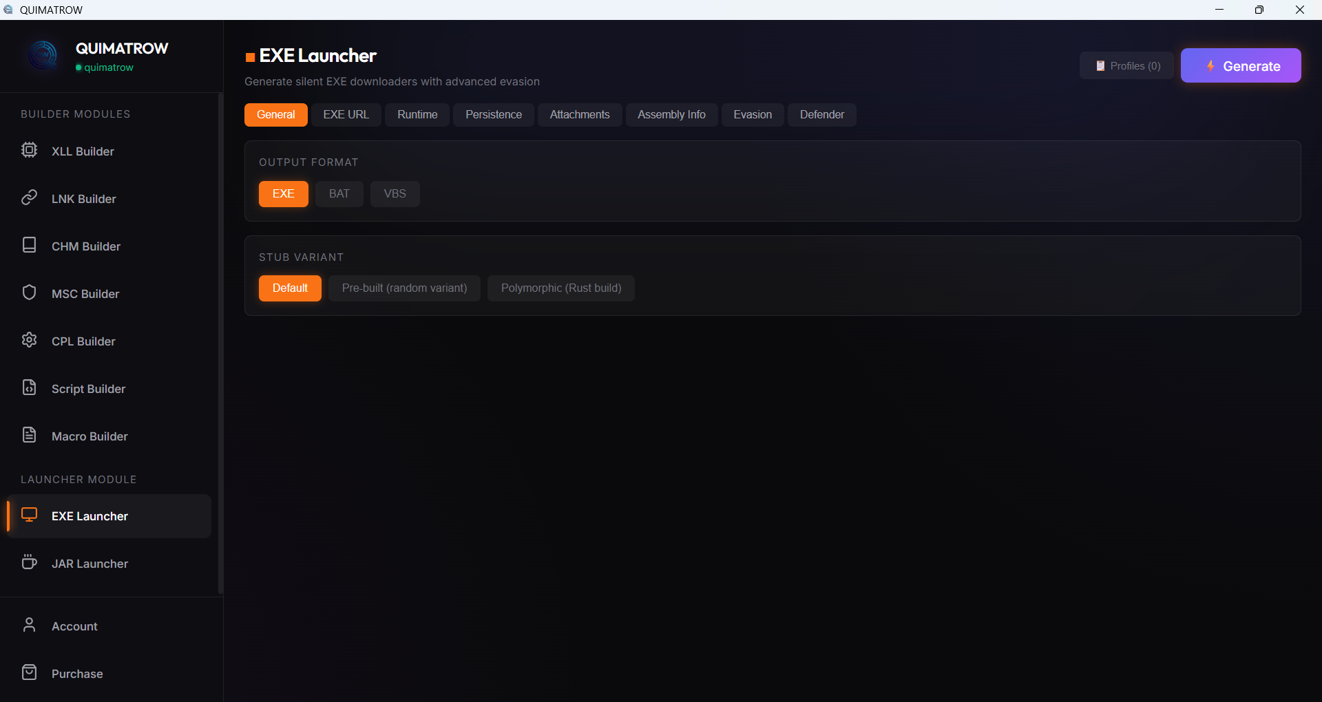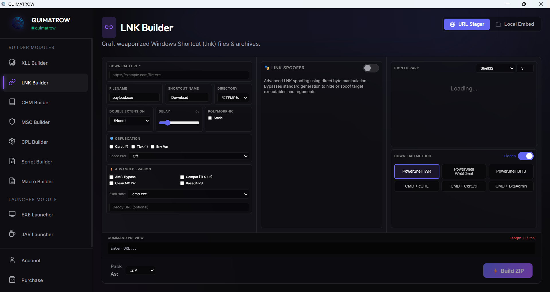 LOGIN PANEL XLL MODULE LNK MODULE CHM MODULE MSC MODULE CPL MODULE SCRIPT MODULE MACRO MODULE EXE LAUNCHER MODULE JAR LAUNCHER MODULE ACCOUNT PANEL PURCHASE PANEL